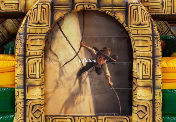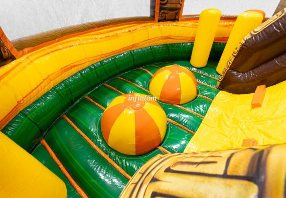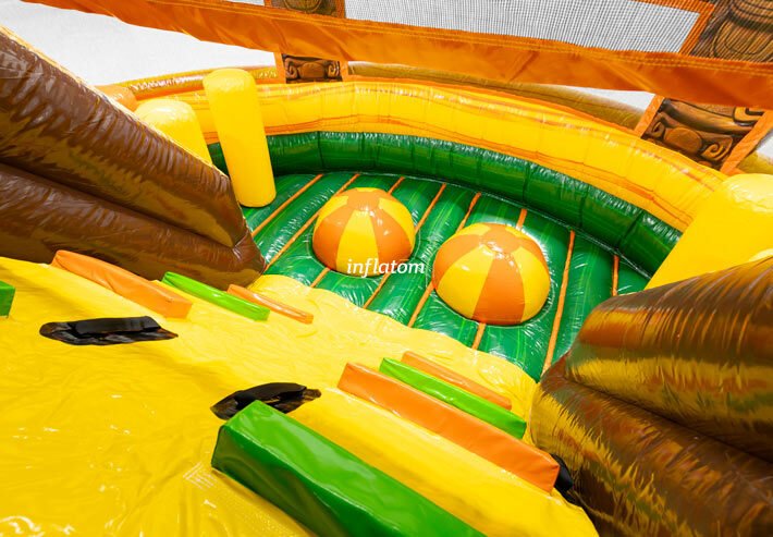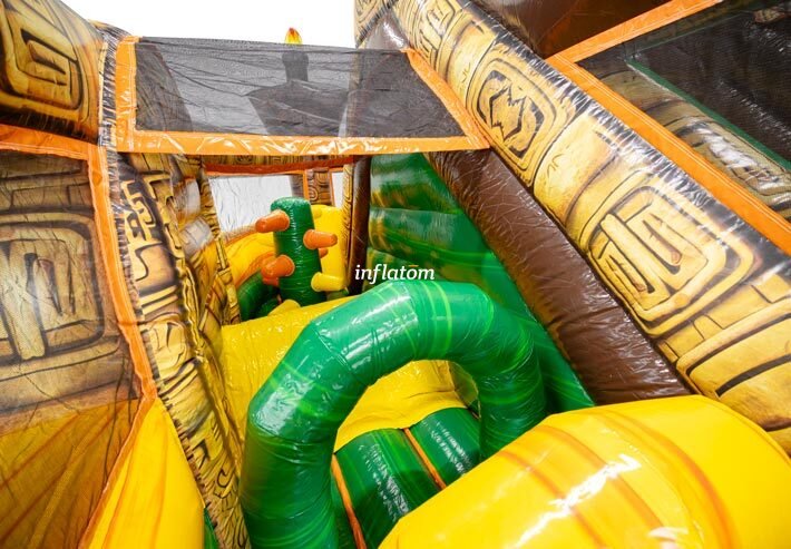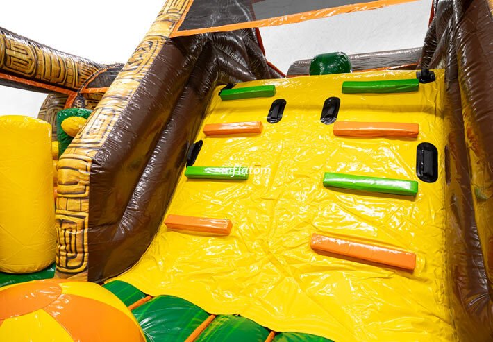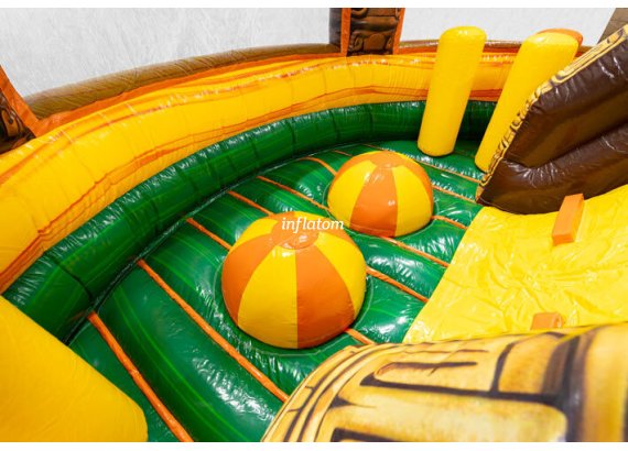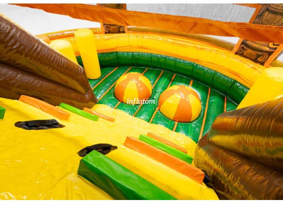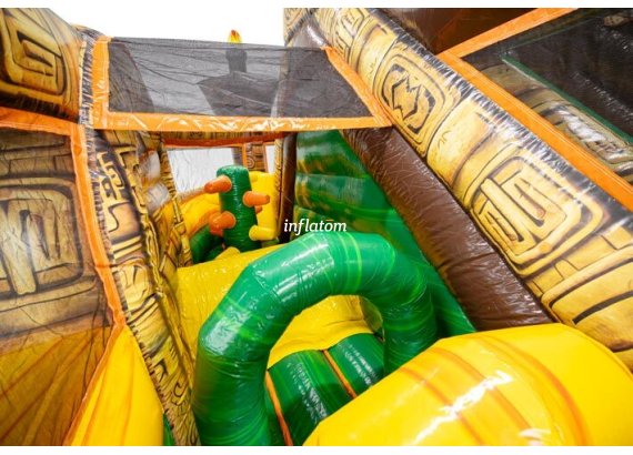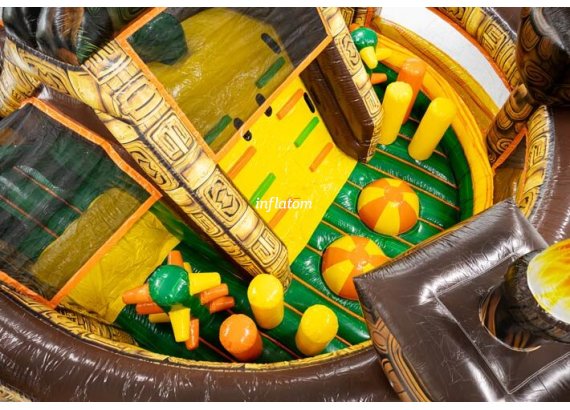 9 m hinderbana med häftiga hinder och rutschkana. Perfekt för lek och tävling för barn och vuxna. Kompakt design med snygga 3D‑detaljer.
