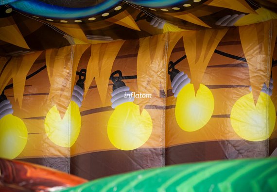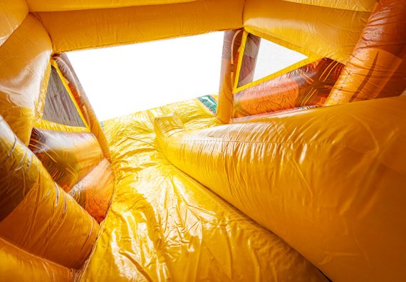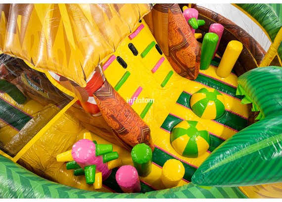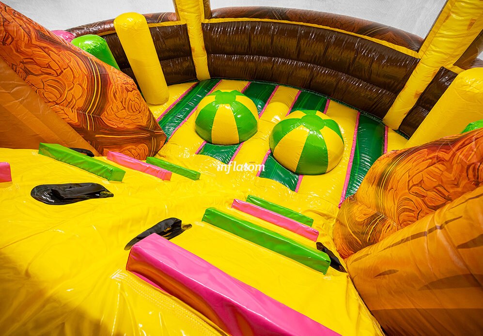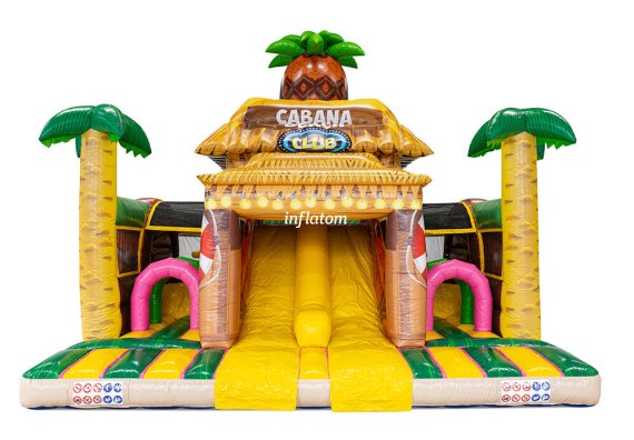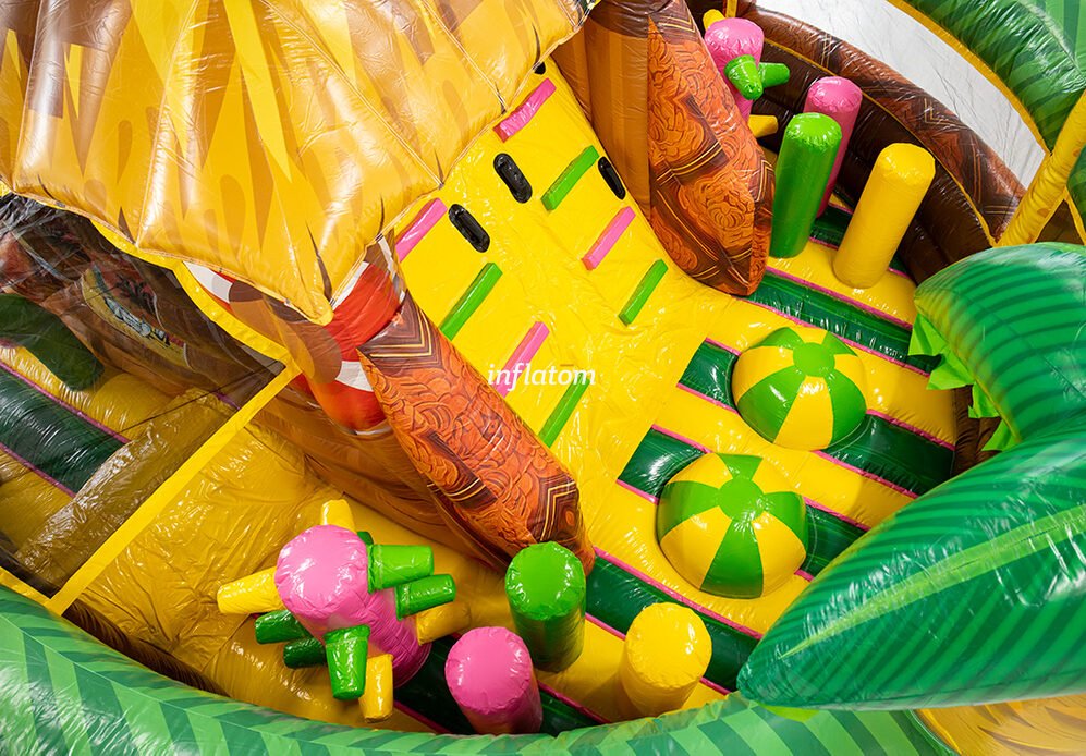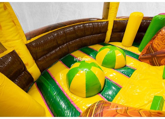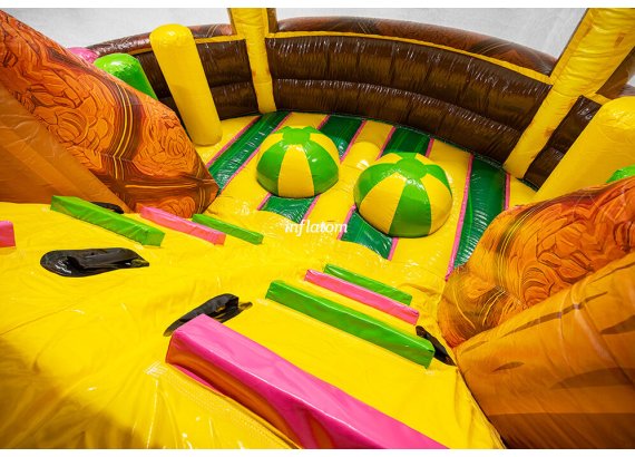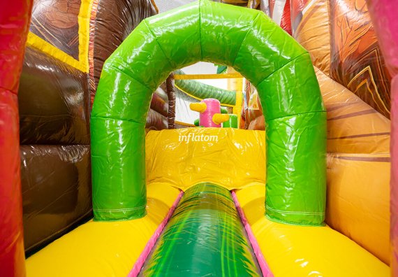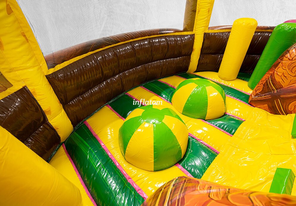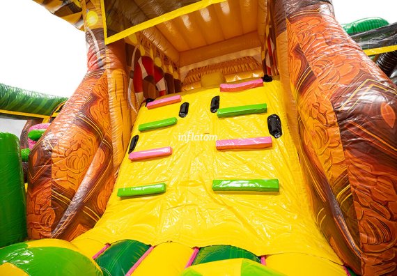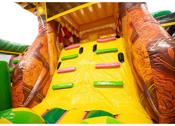 U‑formad hinderbana med klättring, hopp och rutsch. Perfekt för dueller för barn och vuxna. Stor och iögonfallande design.