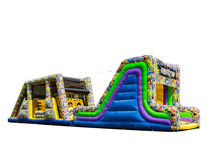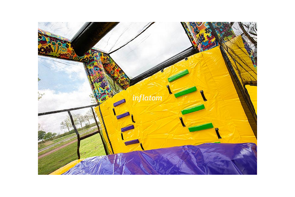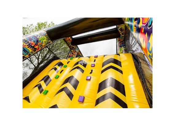 Den färgstarka banan, designad i en riktigt cool graffiti‑stil, sticker ut och skapar äkta street‑känsla. Deltagarna ska över klätterväggar, förbi hinder och nerför en rolig rutschbana. Frågan är: