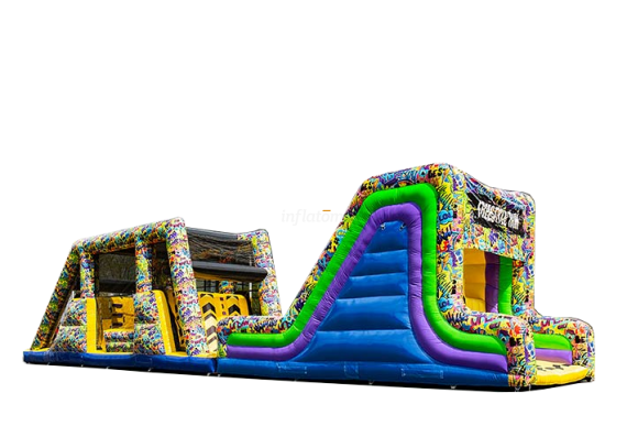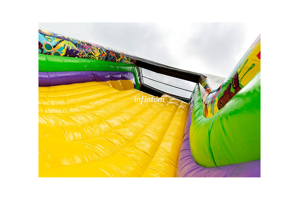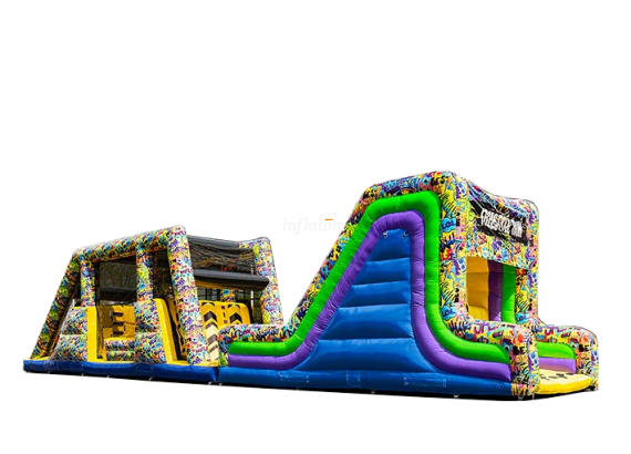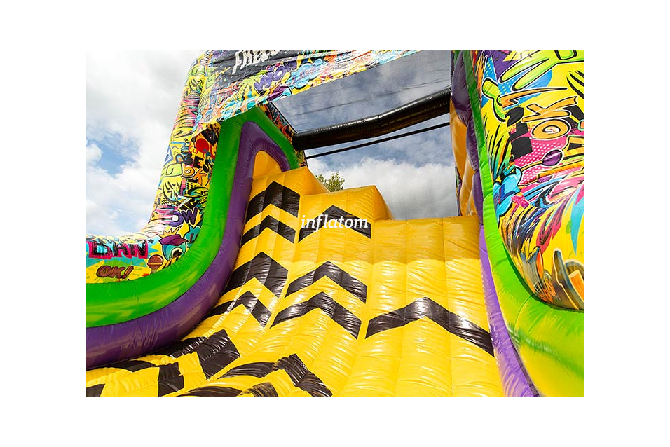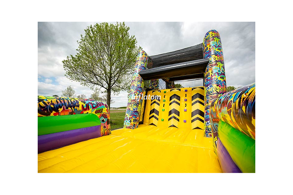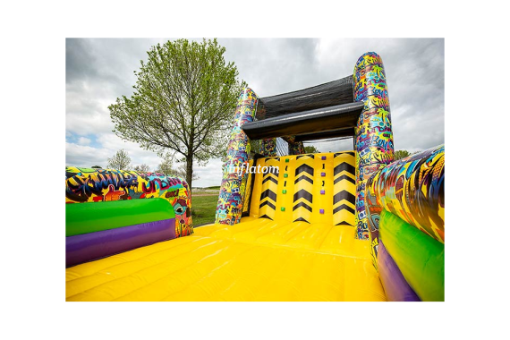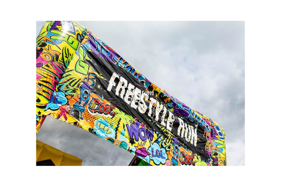 Gör dig redo för action, fart och adrenalin! Freestyle Run är en 22 meter lång uppblåsbar hinderbana som bjuder in barn, ungdomar och vuxna med barnasinnet kvar att klättra, hoppa och glida genom en fartfylld utmaning. Perfekt för event, företagsfester, skolarrangemang, stadsfestivaler eller uthyrning – här finns underhållning för alla!