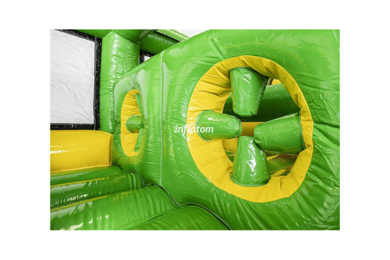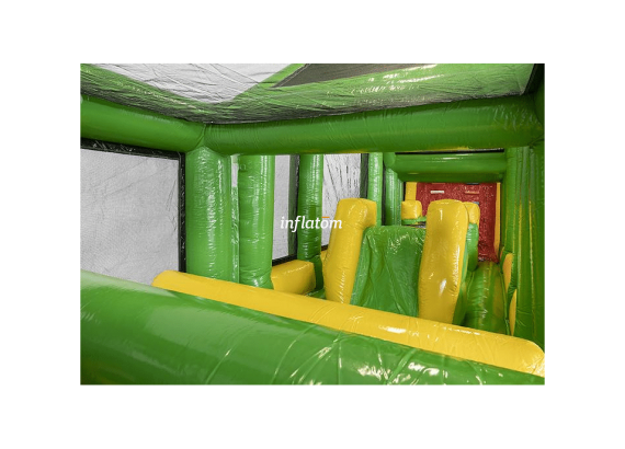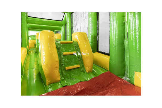 Gör dig redo för 19 meter fyllda med fart, lek och utmaningar! Den här uppblåsbara hinderbanan låter deltagarna klättra, ta sig över och under hinder, hoppa och slutligen glida i mål – en tävling full av energi och spänning.