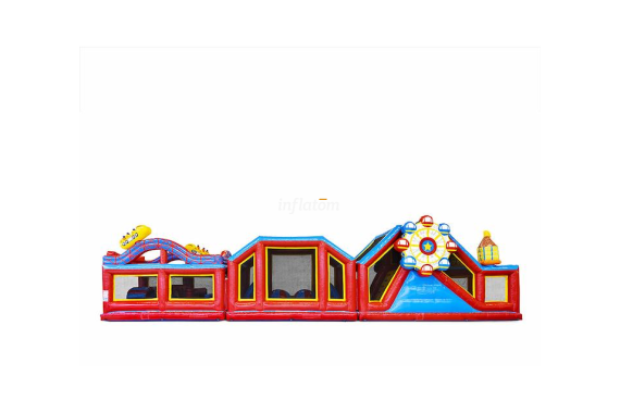 Gör dig redo för 19 meter fyllda med fart, lek och utmaningar! Den här uppblåsbara hinderbanan låter deltagarna klättra, ta sig över och under hinder, hoppa och slutligen glida i mål – en tävling full av energi och spänning.