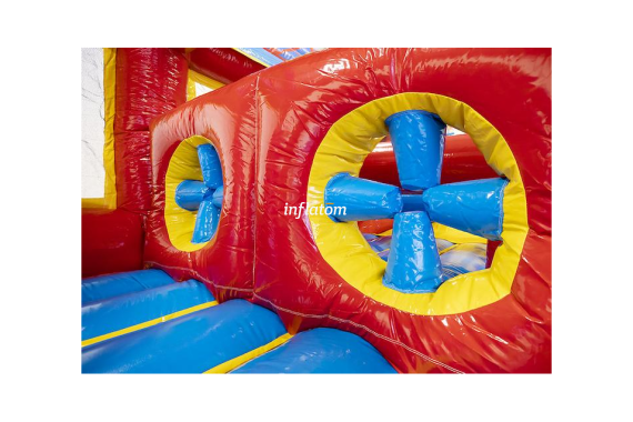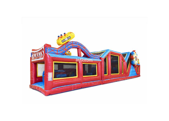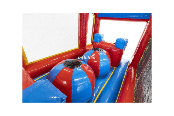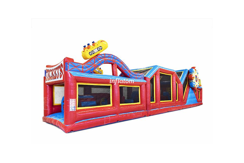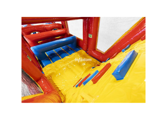 Säkerheten är på topp: hela banan är försedd med nät längs sidorna, så alla kan köra på i full fart utan risk. Det färgstarka och iögonfallande designet gör hinderbanan till en självklar publikmagnet.