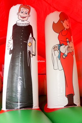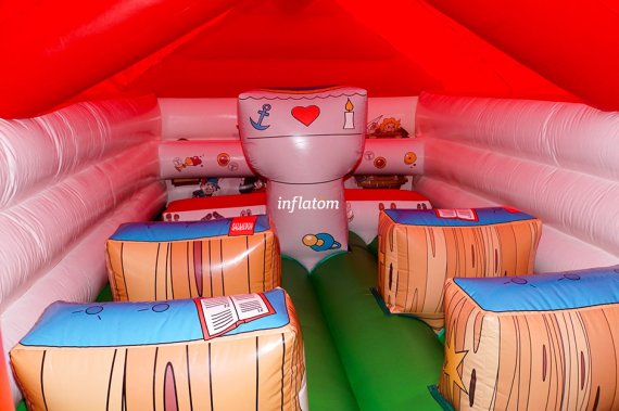 Kyrkoskeppet: Är för lek och tumling och är dekorerat med präster och kyrkogångare i form av Bif'n Bash, kyrkbänkar, dopfont och knäfall.