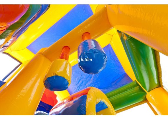 Multiplay borg med hinder, klättervägg och Rutschbana