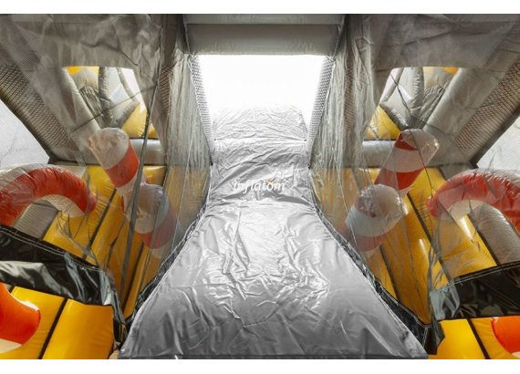 Med två ingångar och rutchkana i mitten samt 3D-figurer inuti som barnen kan krypa över och under.