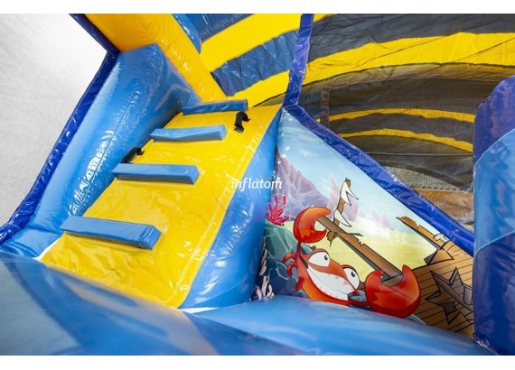 Med två ingångar och rutchkana i mitten samt 3D-figurer inuti som barnen kan krypa över och under.