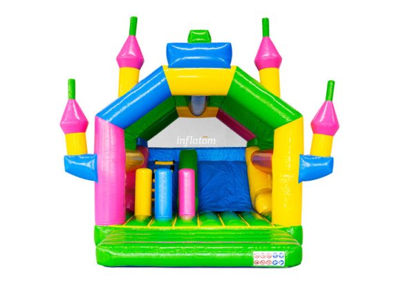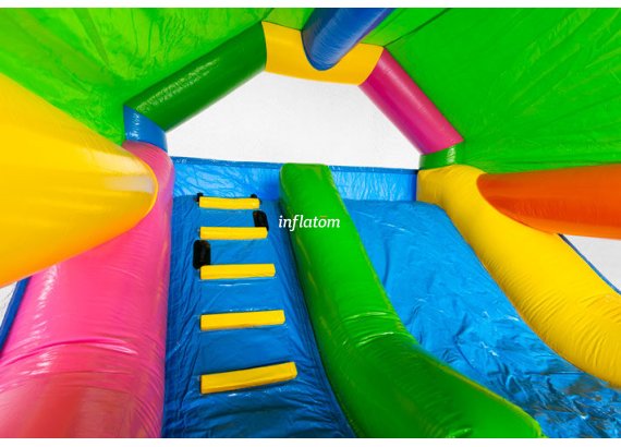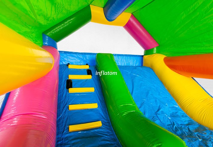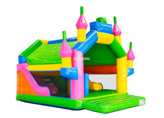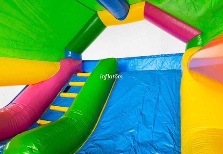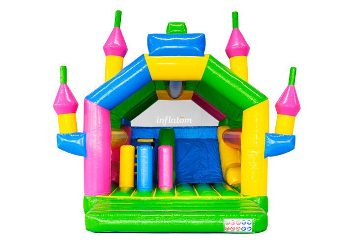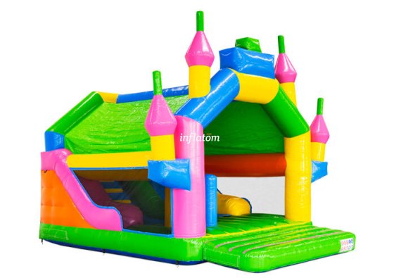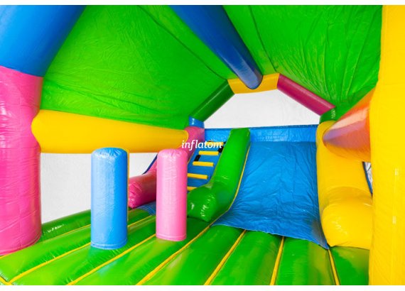 Denna kombinerade hoppborg och rutschkana är den ultimata lekplatsen för aktiva barn!