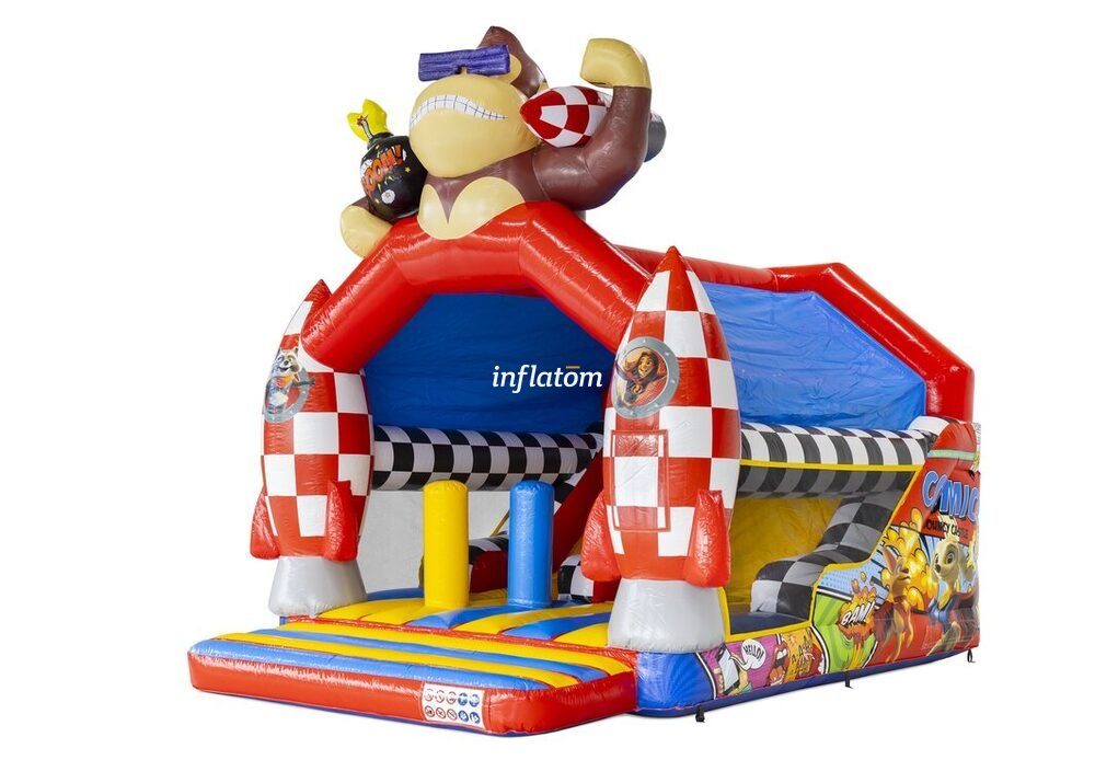 Denna kombinerade hoppborg och rutschkana är den ultimata lekplatsen för aktiva barn!
