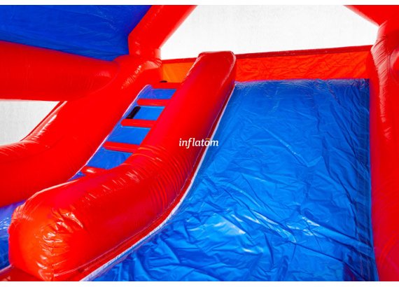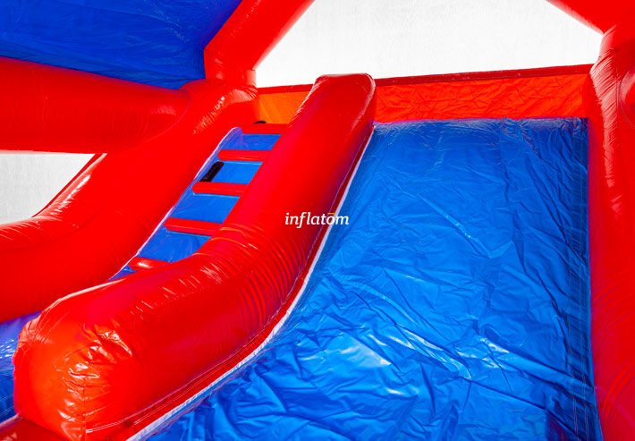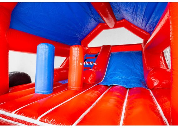 Denna kombinerade hoppborg och rutschkana är den ultimata lekplatsen för aktiva barn!