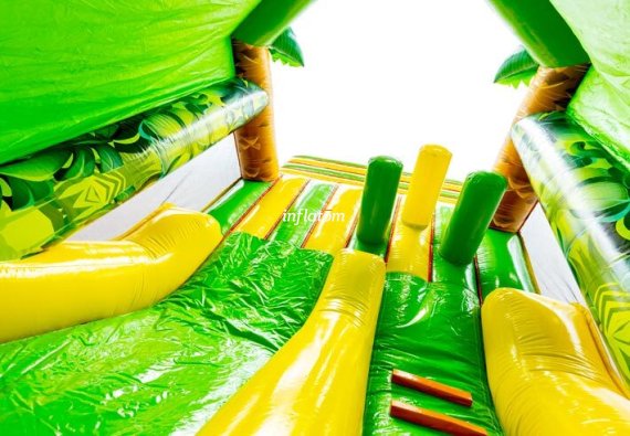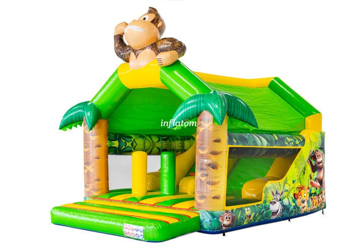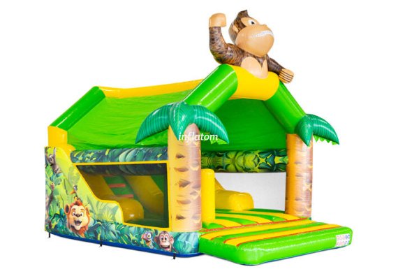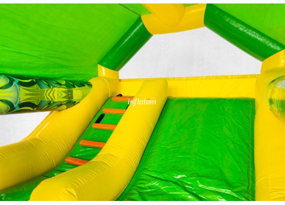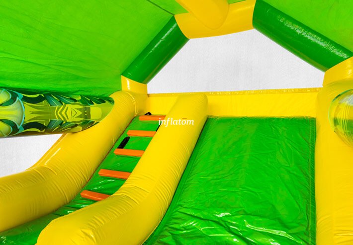 Denna kombinerade hoppborg och rutschkana är den ultimata lekplatsen för aktiva barn!