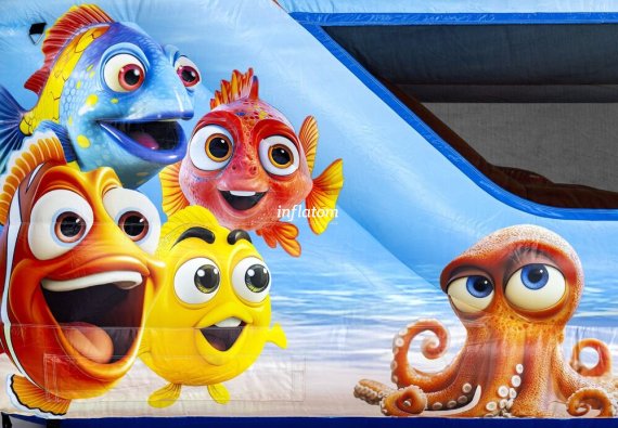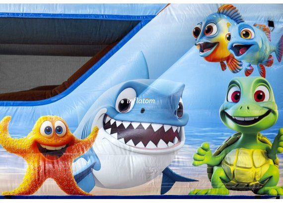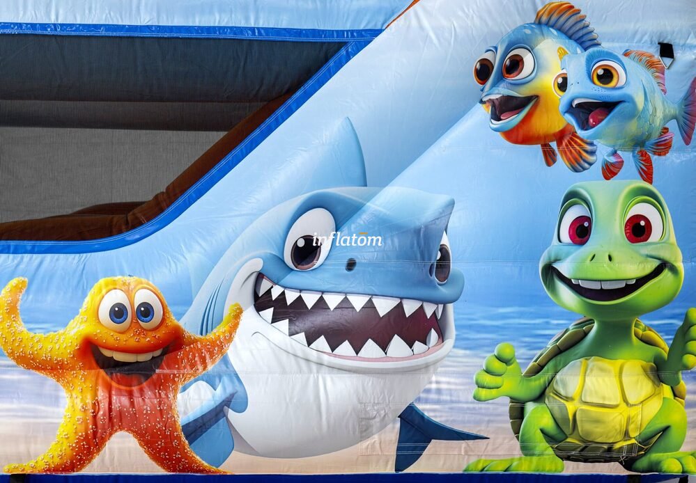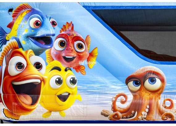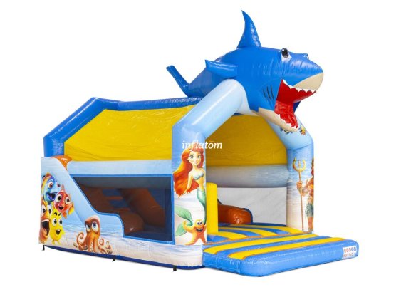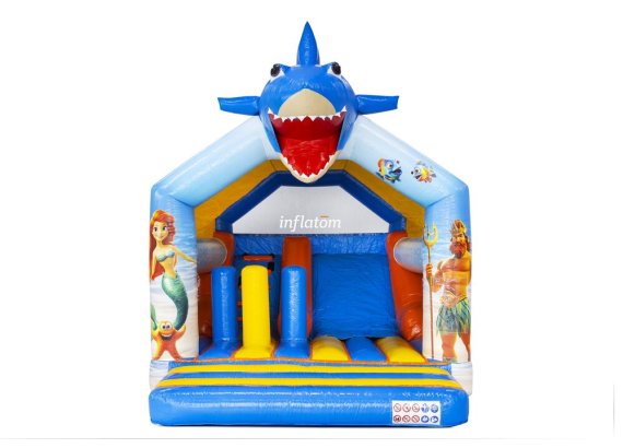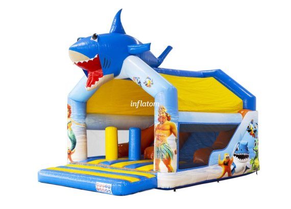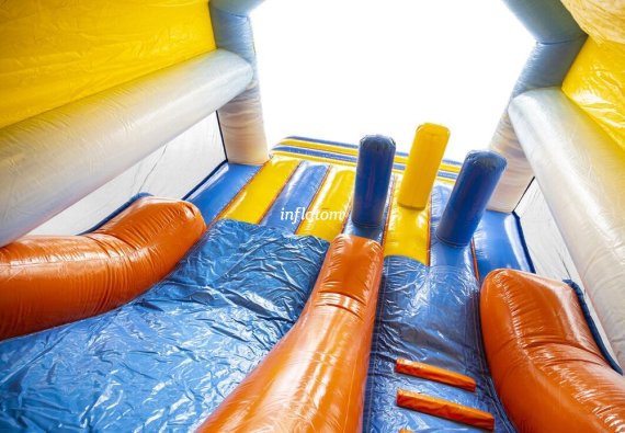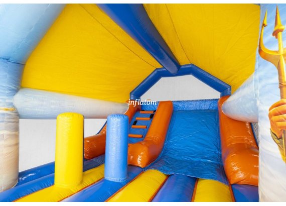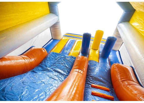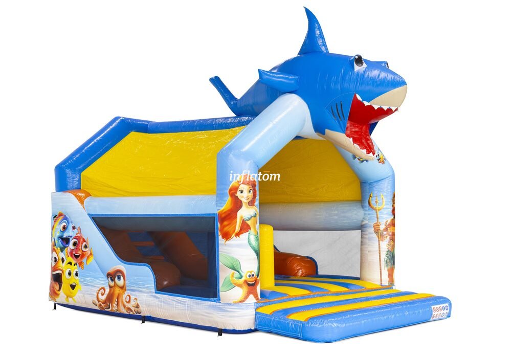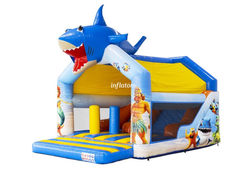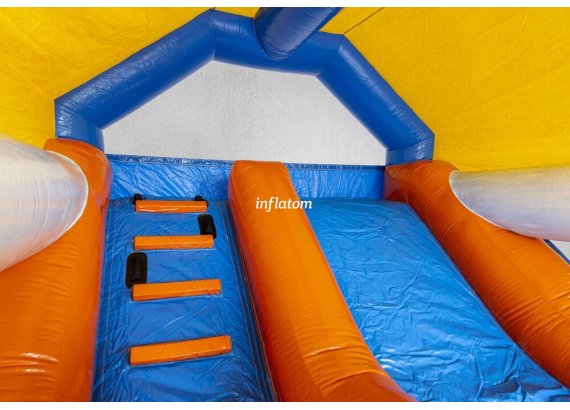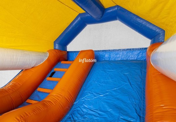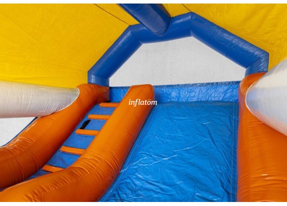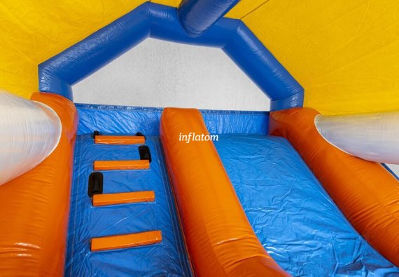 Denna kombinerade hoppborg och rutschkana är den ultimata lekplatsen för aktiva barn!