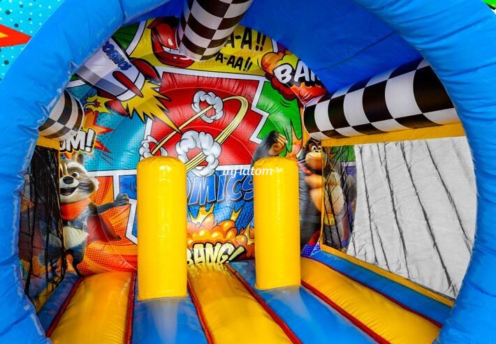 Superhäftigt och färgglatt hoppborg för de minsta.